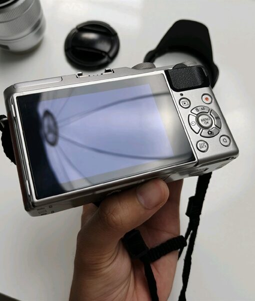Phụ kiện: dây đeo cổ, dây sạc micro usb, pin chính hãng, hood ống kính.